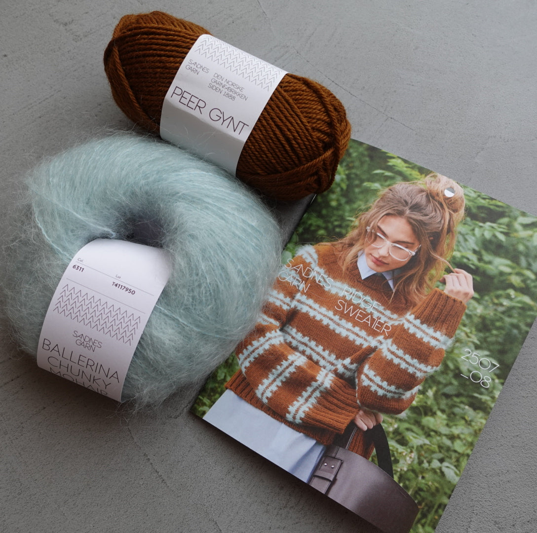 ペール・ギュントの畝模様にバレリーナ・チャンキーモヘアをあしらった、柔らかく心地よいセーター。美しい質感が特徴です。上から下へ編むふわふわのモヘアが、柄を引き立て、より印象的な効果を生み出します。刺激的なカラーコンビネーションを楽しむのに最適です。