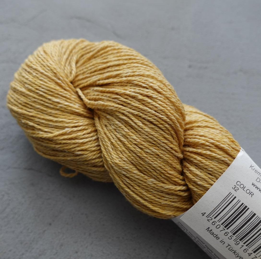 GOTS認証を受けており、100%オーガニックなので、赤ちゃんにも最適です。軽くて柔らかく、お肌にとても優しい糸です。ウールとコットンは染料の吸収性が異なるため、美しい杢調の色合いが生まれます。
