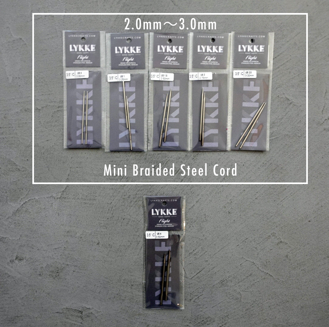 2.0mm~3.0mmまでの針にはフライトニードル用のステンレススチール製のミニコード(Mini Braided Steel Cord)が必要です。