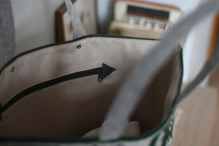 Material : 手織り部分はウール100% その他は丈夫なポリエステル混の生地を使用。